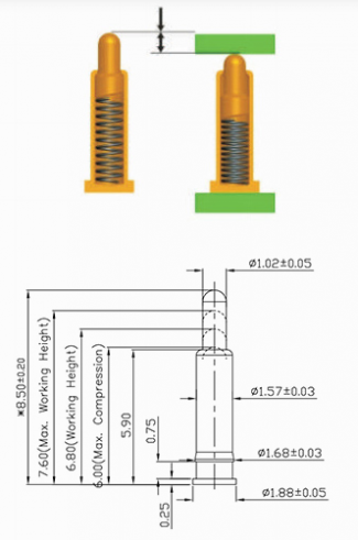Pogo Pin (atsperu savienotāja) pamata darba augstums: