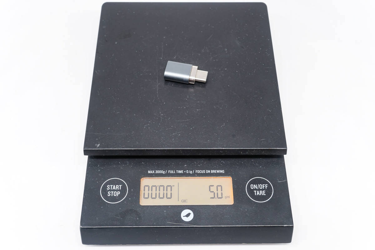 Taisnas galvas svars ir aptuveni 5 g. Ja kļūdu saskaita, var redzēt, ka abu adapteru svars ir vienāds.