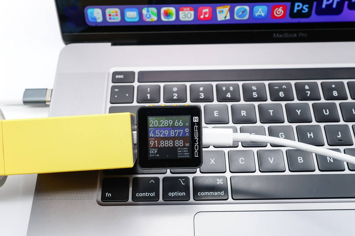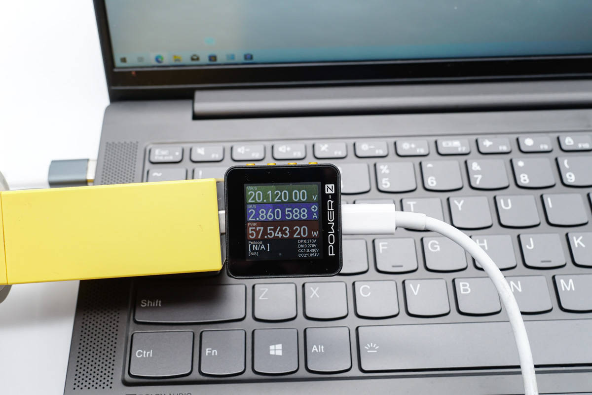 Vispirms apskatīsim ātro uzlādi. Izmantojiet 100 W lādētāju ar taisnvirziena magnētisko adapteri, lai uzlādētu klēpjdatoru ar jaudu 20,12 V 2.{5}}A 57,54 W.