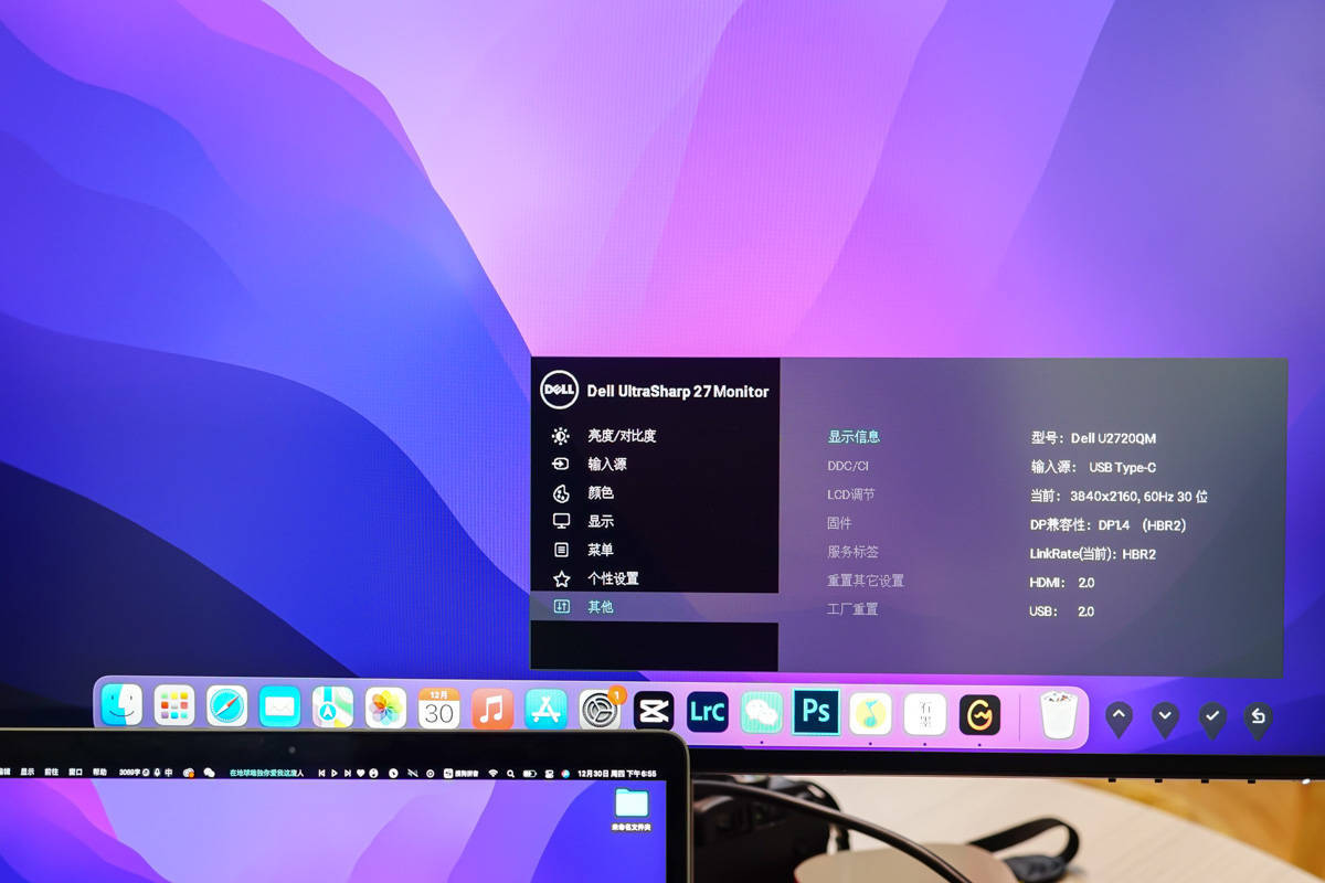 Tālāk apskatīsim video pārraidi, caur adapteri savienojiet Thunderbolt 3 datu kabeli ar Dell U2720QM 4K monitoru.